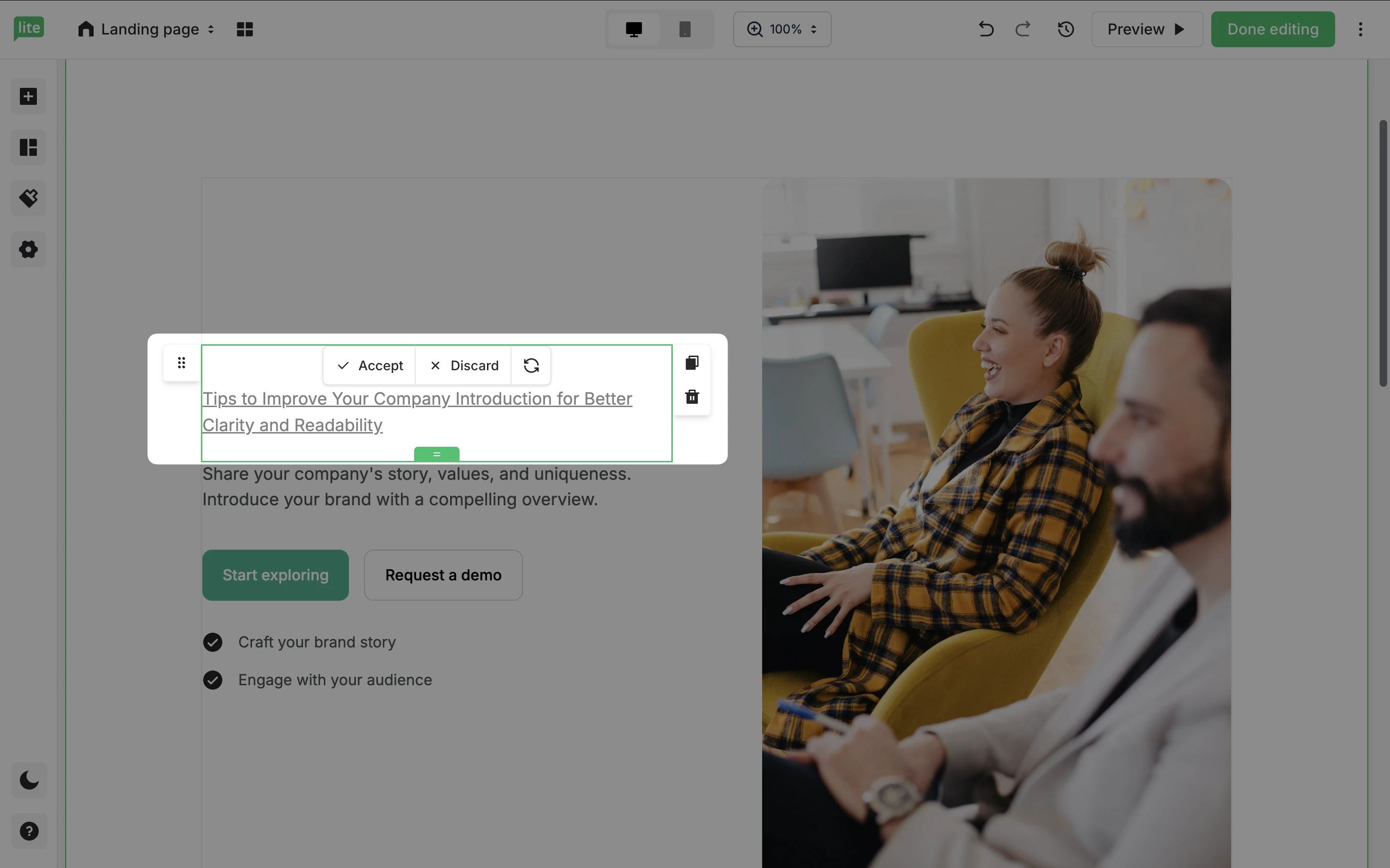 8. Once the new text is generated, you can choose to accept the new text, decline it, or regenerate.