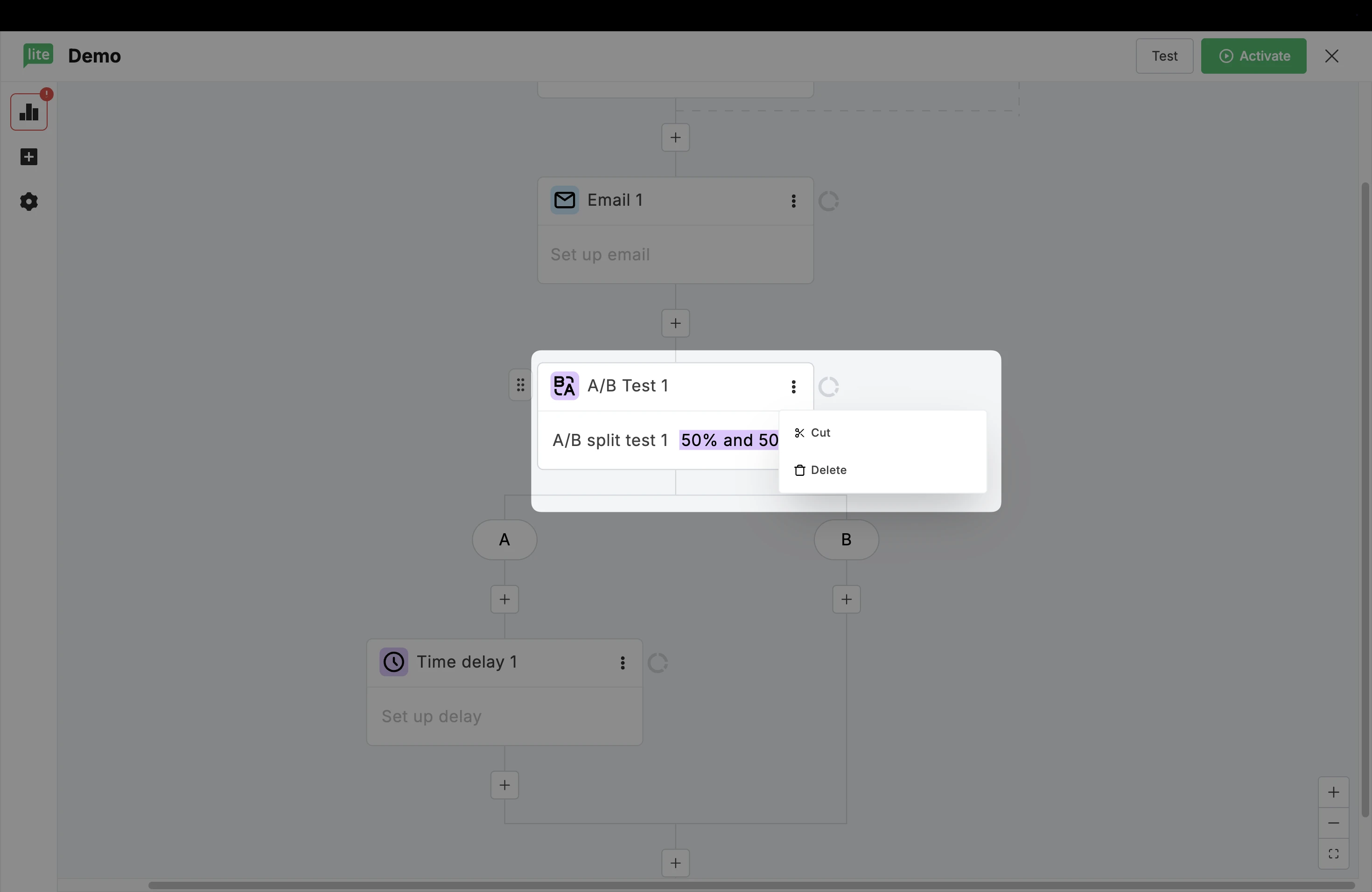 2. Click the three dot icon on the right side of the A/B split testing step you want to delete and choose Delete.