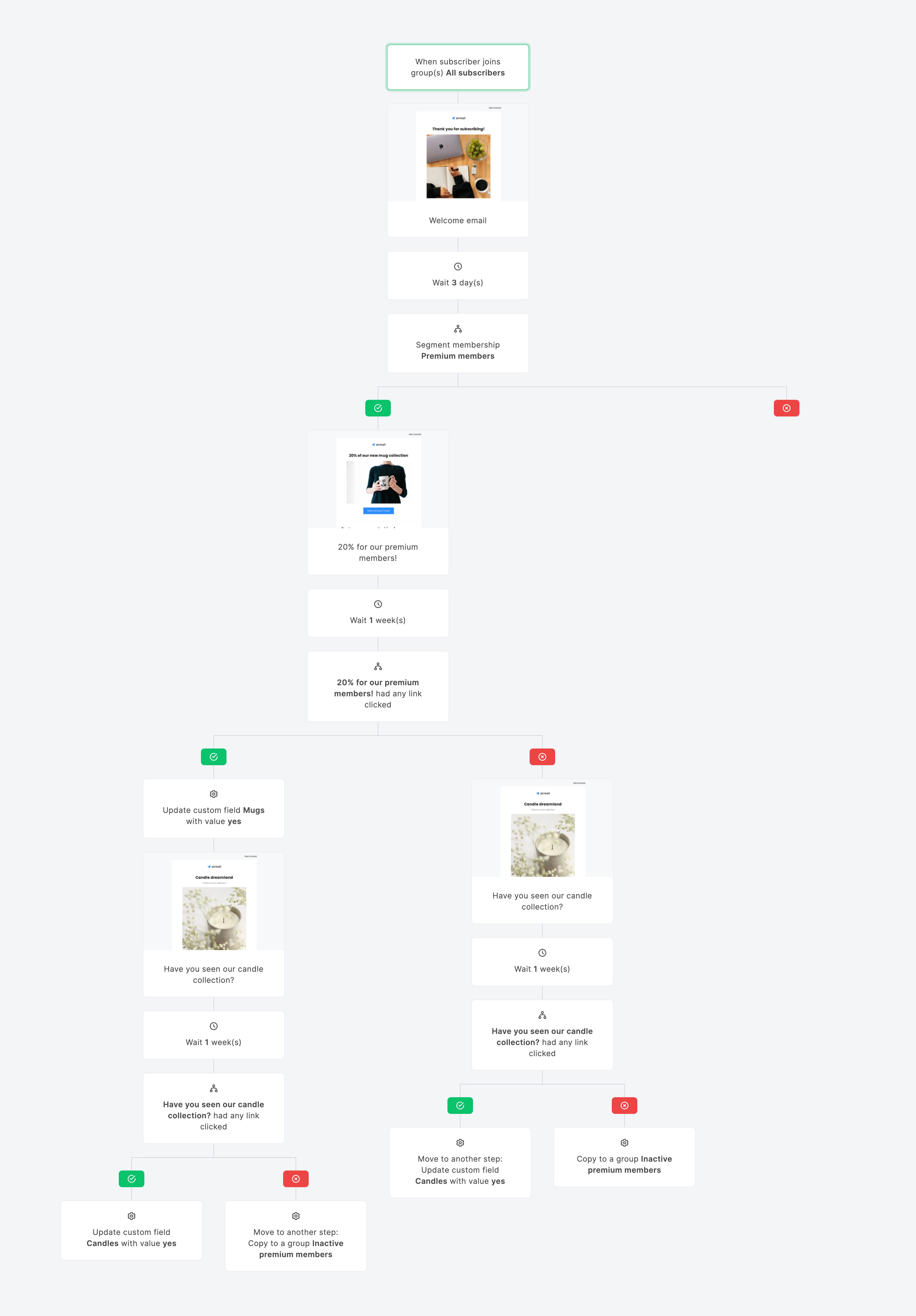 This workflow uses Condition steps to filter your premium subscribers to send them targeted emails.