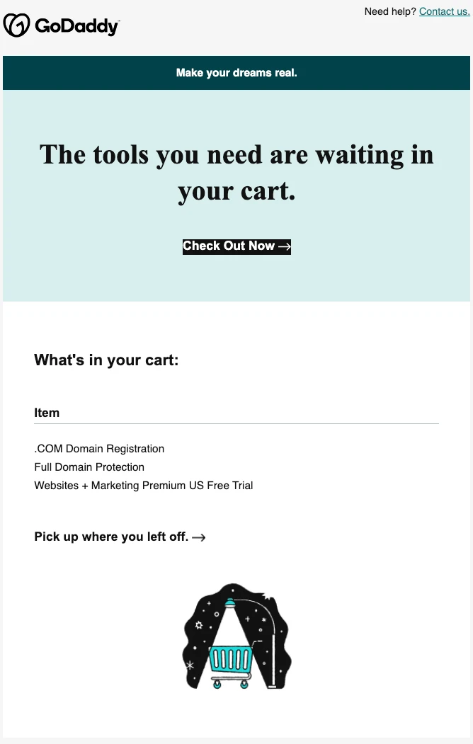 GoDaddy abandoned cart email