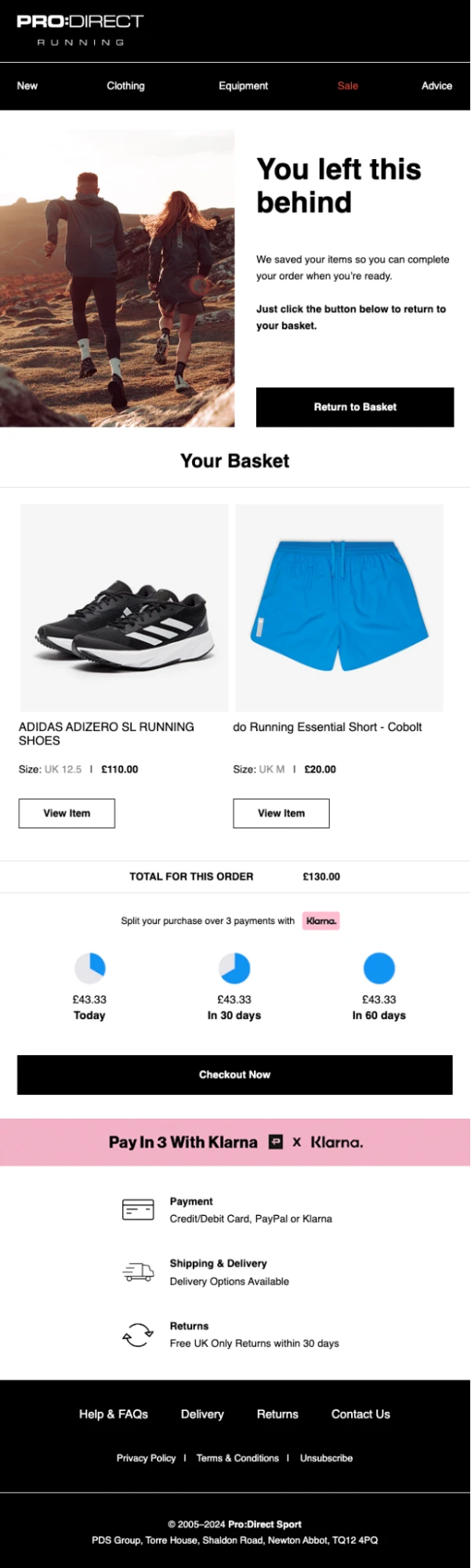 Pro:Direct Running highlights that customers can pay for the basket over 3 months. This reduces the amount the customer pays now significantly, which may make the purchase more appealing.