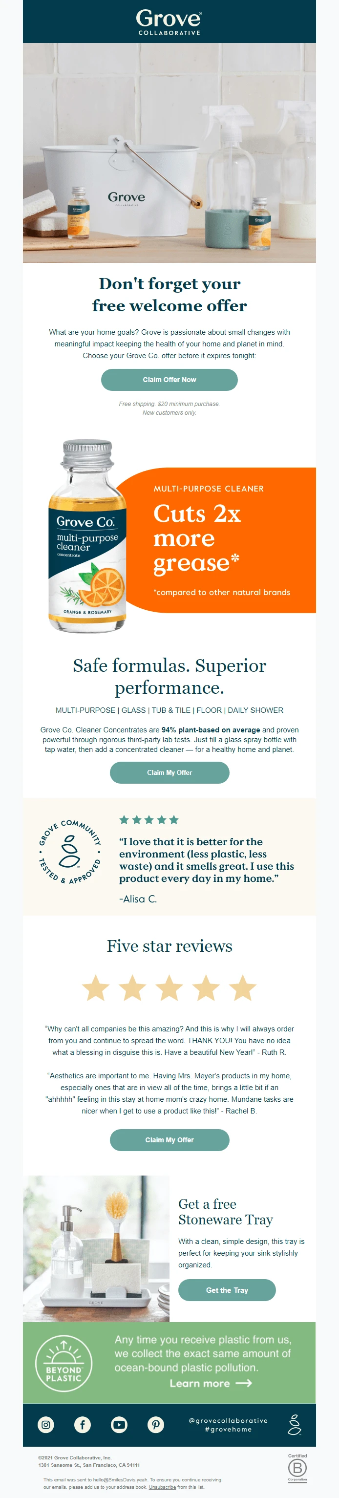 5.Create urgency with limited-time deals: Grove Collaborative
