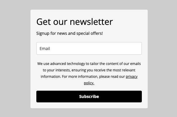 For even more transparency, you could make your AI use clear to your subscribers by adding a note to your emails or forms, as in the example below.