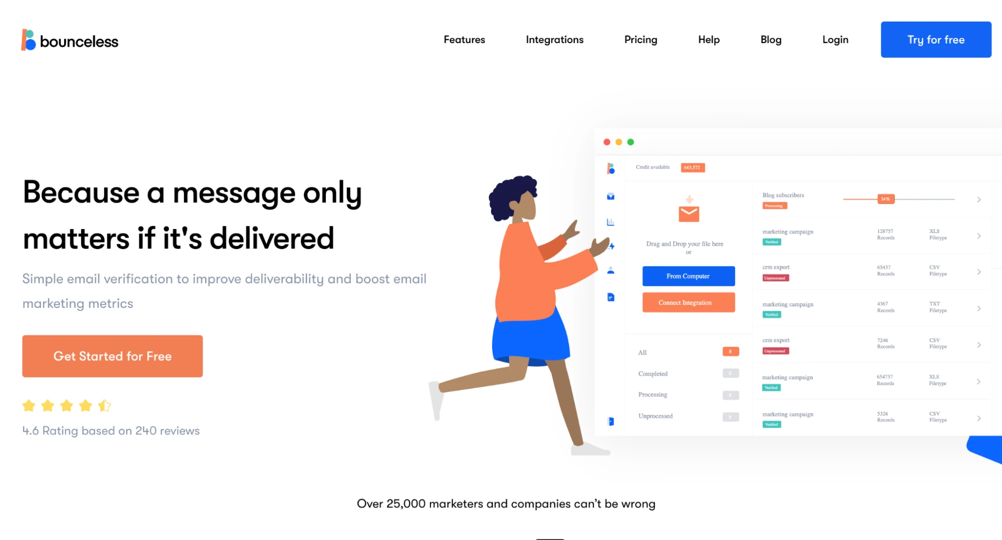 Bounceless is a simple email list cleaning tool that lets you check your list for bad email addresses. The tool produces a report highlighting emails in six categories: deliverable, invalid, accept all, disposable, unknown, or spam traps.