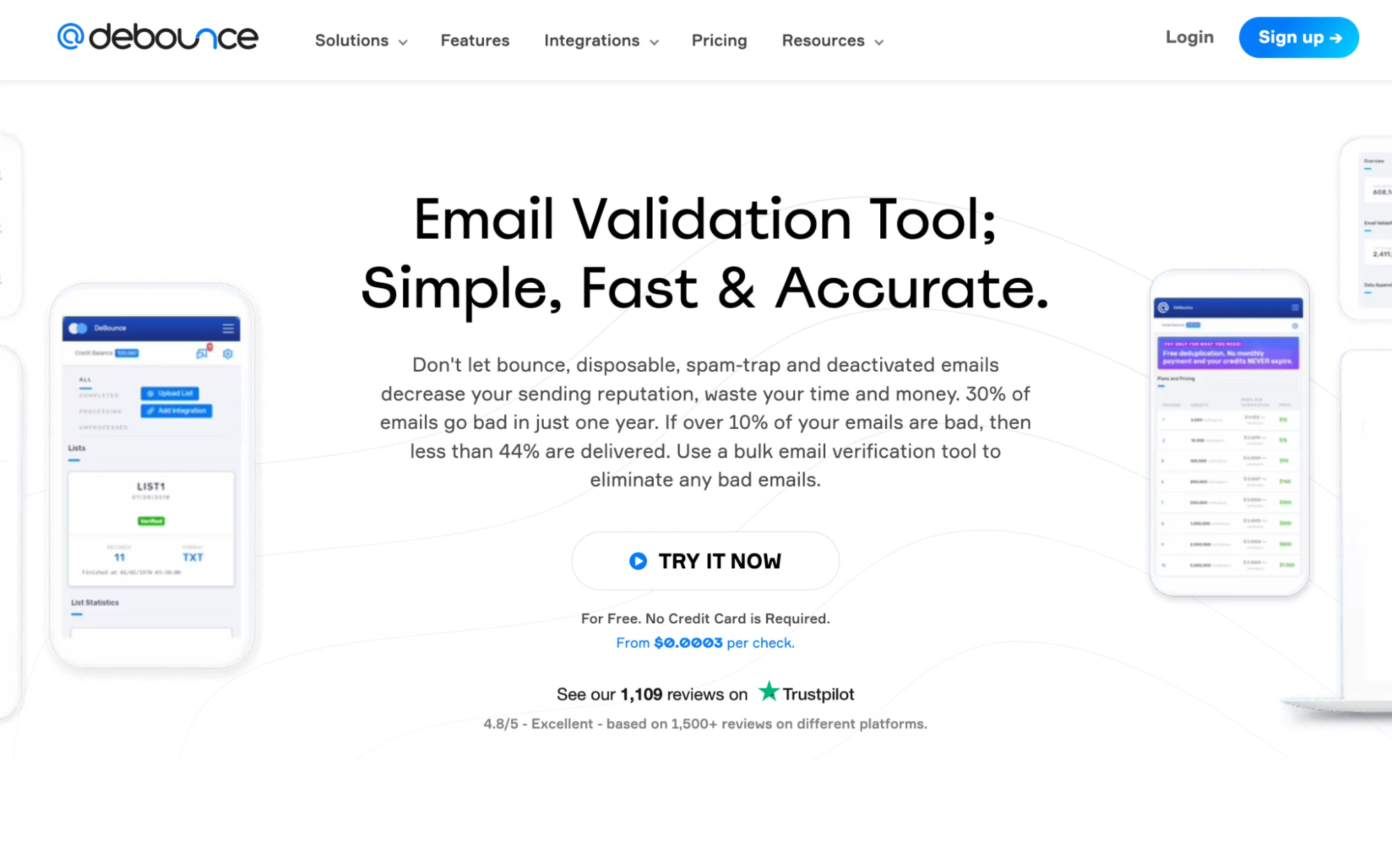 Debounce is an email validation tool with plenty of features to clean your list. It can find disposable email addresses, those with incorrect syntax, duplicates and more. The tool has a bulk email verifier you can use to check your existing list and an email verification API to verify addresses as people sign up.