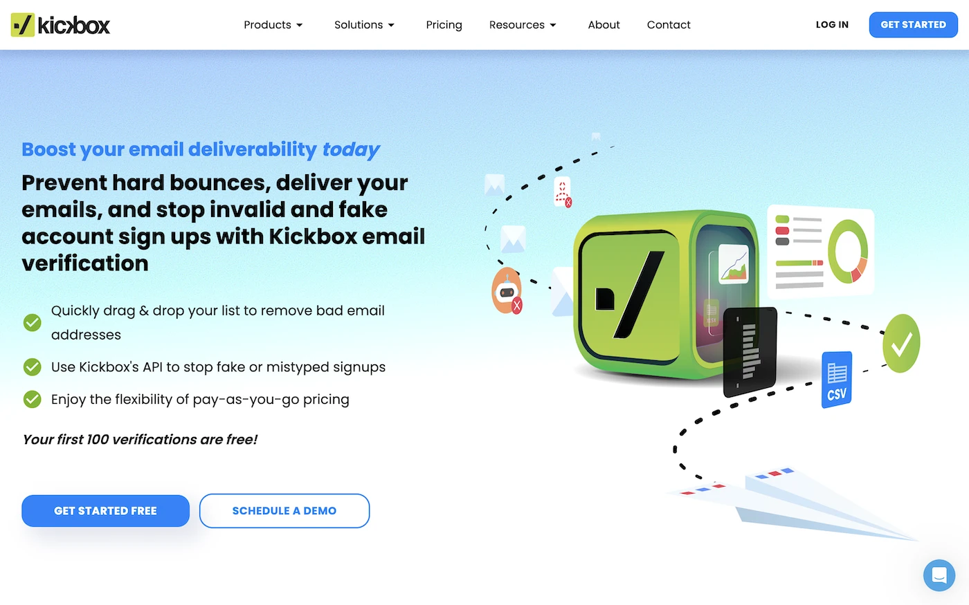 Kickbox is a premium email verification service that claims high accuracy in both individual and bulk email verifications. It integrates with sign-up forms for real-time filtering, ensuring a well-maintained email list. The service guarantees a 95% delivery rate on those labeled "deliverable", complete with a unique quality score for each address.