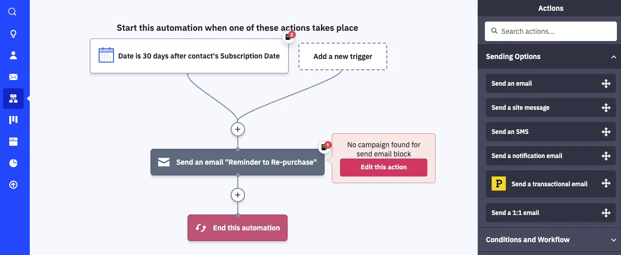 That said, the automation options are basic. You can set up simple flows like abandoned cart reminders, but you won’t find the complex behavioral triggers that specialized email tools offer.