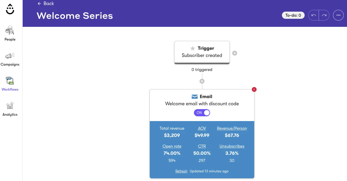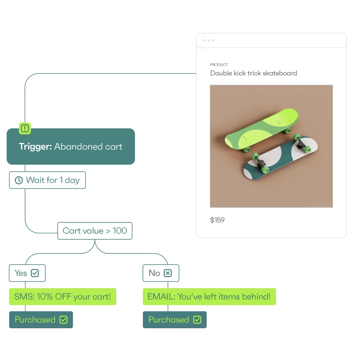 Simple e-commerce-specific automation workflows like abandoned cart reminders and welcome emails