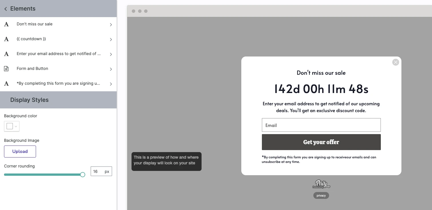 Pop-ups and forms are essential for collecting the email addresses of website visitors. You can also use promotional pop-ups to highlight products or content to generate sales.