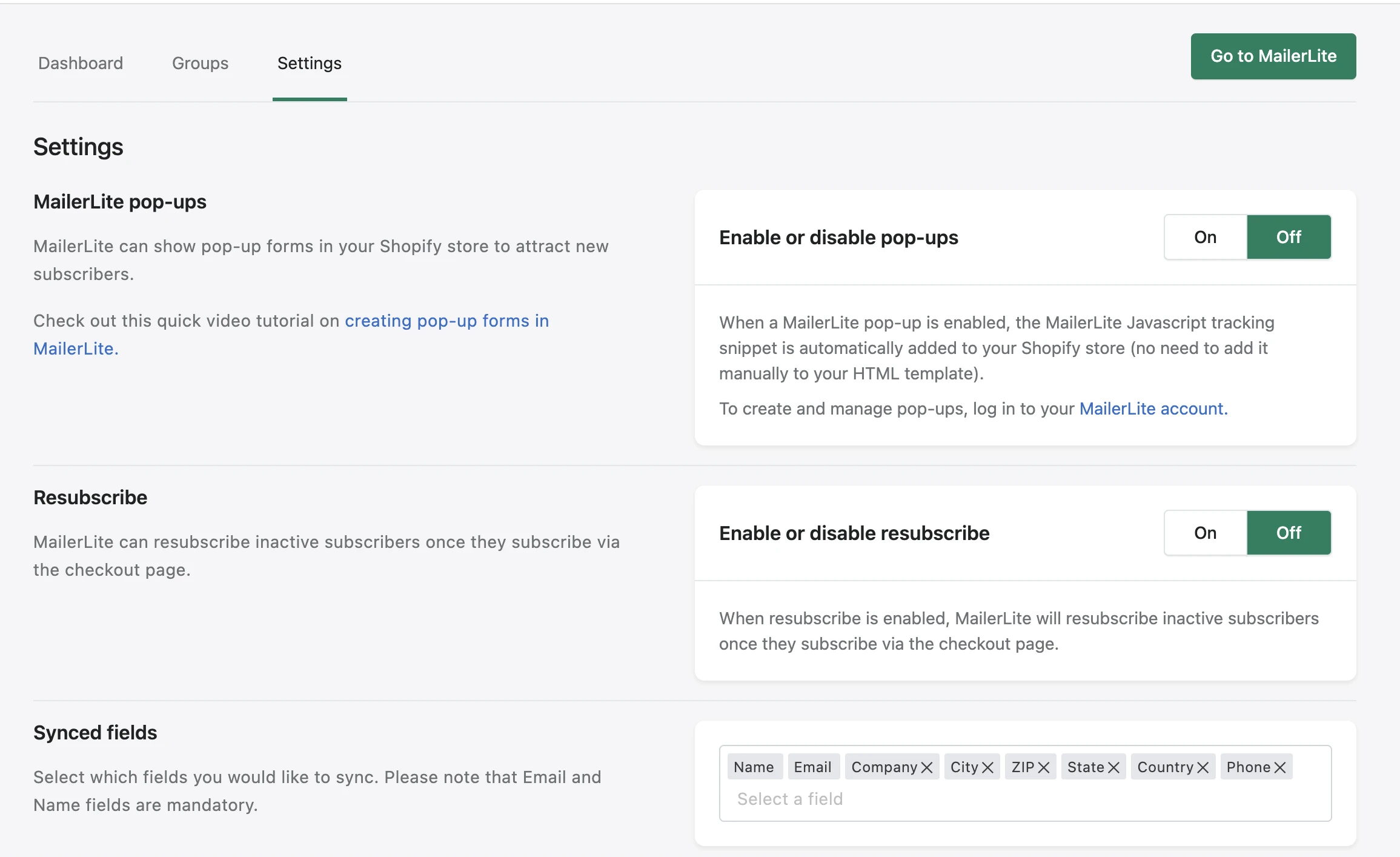 Setting up the Shopify integration was quick. I installed the MailerLite Email Automation app from the Shopify store and connected my MailerLite account. The whole process took just a few minutes, and my products, customers and purchase data synced automatically.