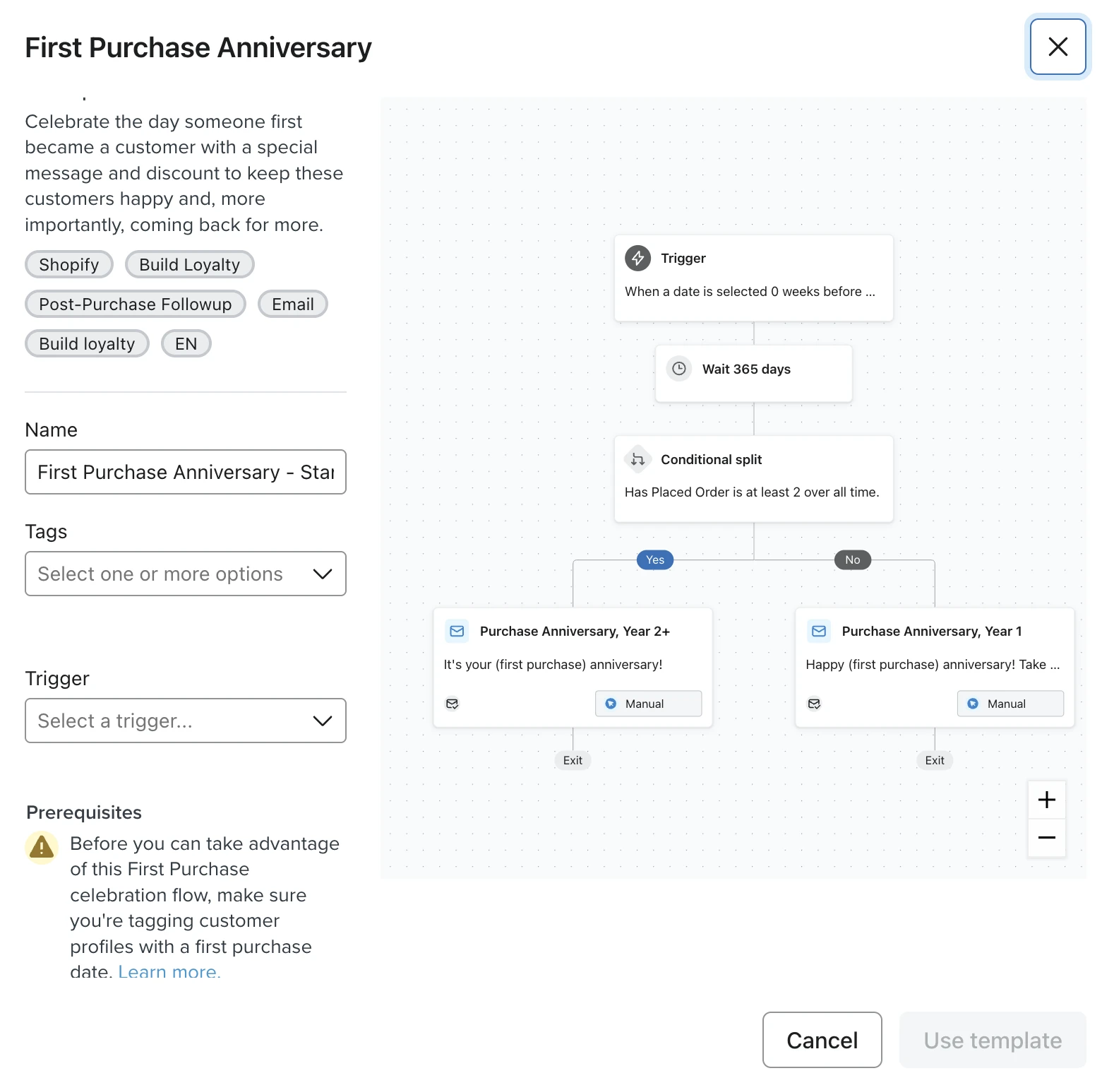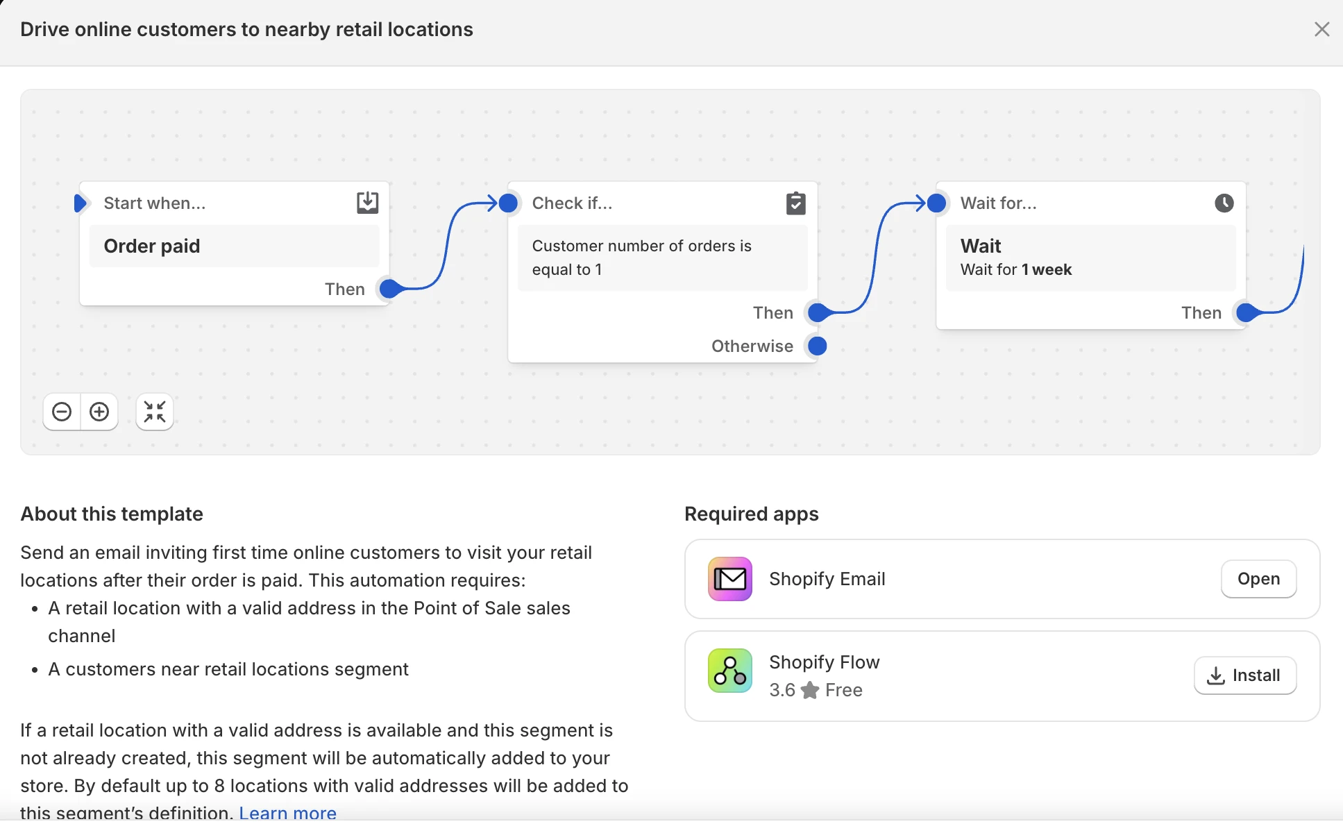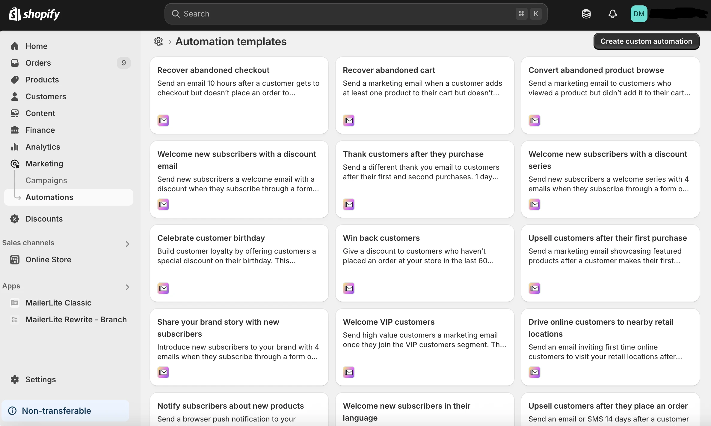 Shopify has a decent number of automation workflow templates for welcoming new customers, celebrating their birthdays, upselling products and more. You also have the option to create custom workflows.