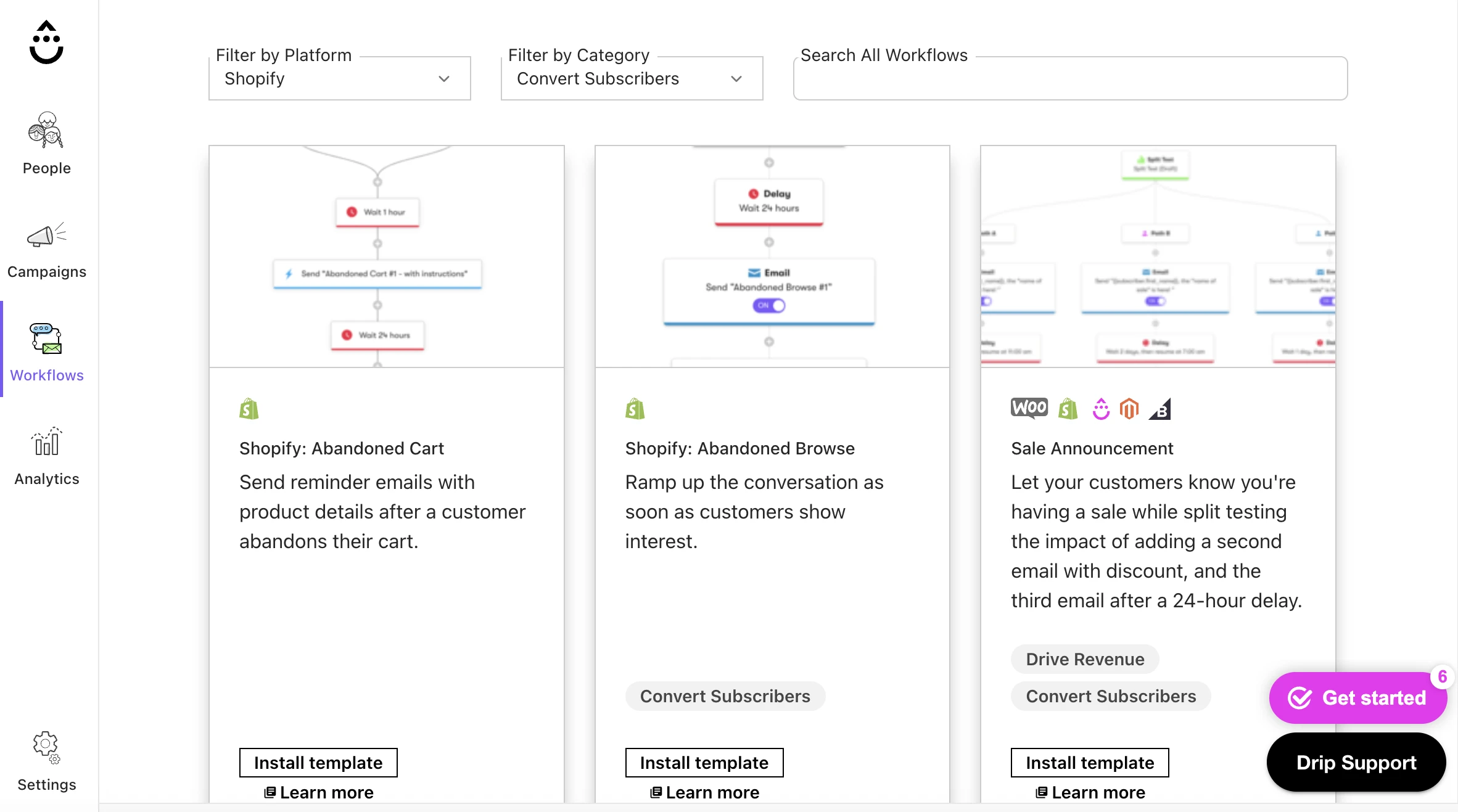 Pre-built automation templates, such as abandoned cart emails and post-purchase follow-ups