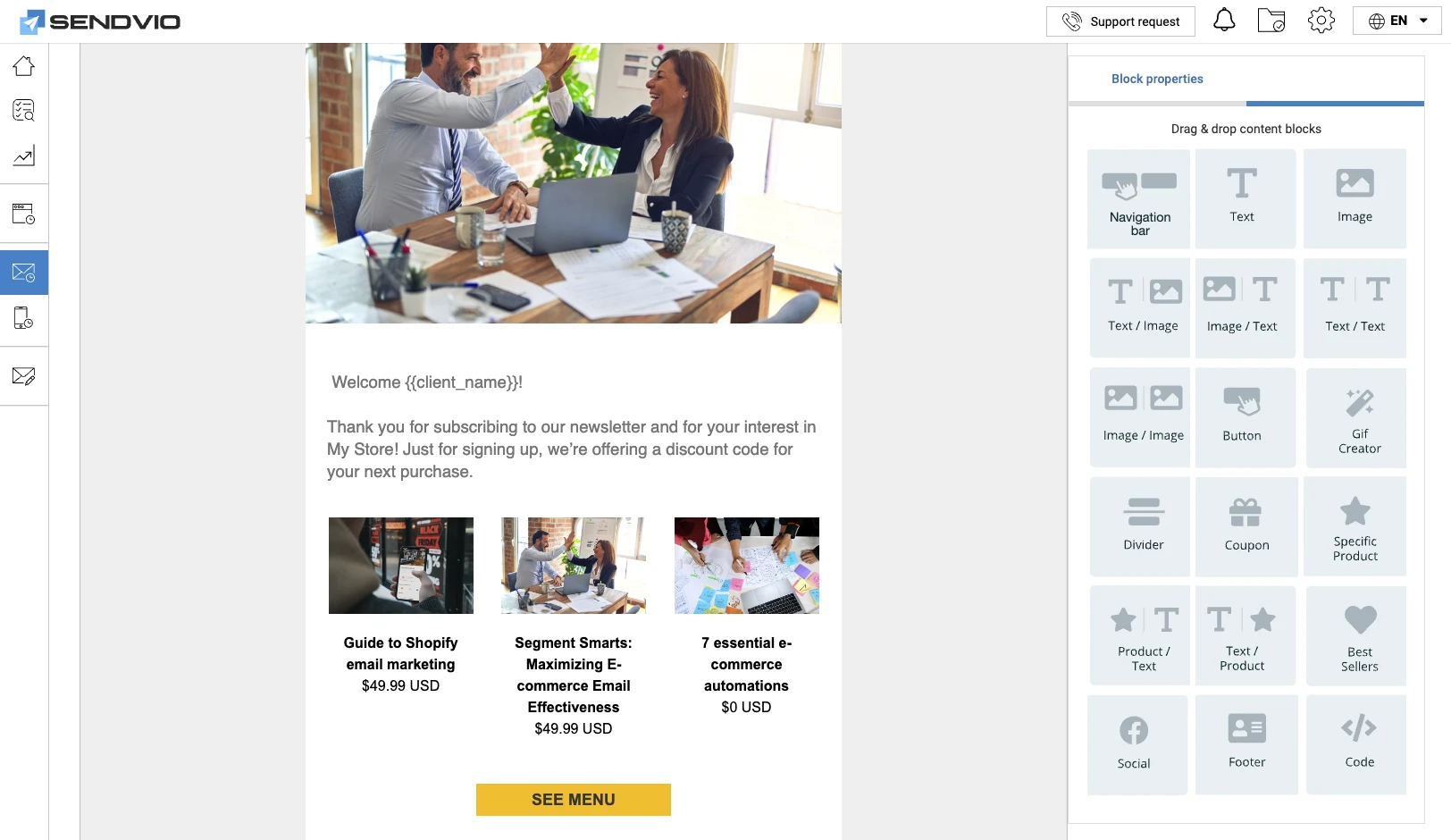 I could quickly add products to emails and segment customers based on their purchase history without any extra setup. The email builder is straightforward; it gets the job done for basic email marketing campaigns, but it’s not as feature-rich as dedicated email marketing apps.