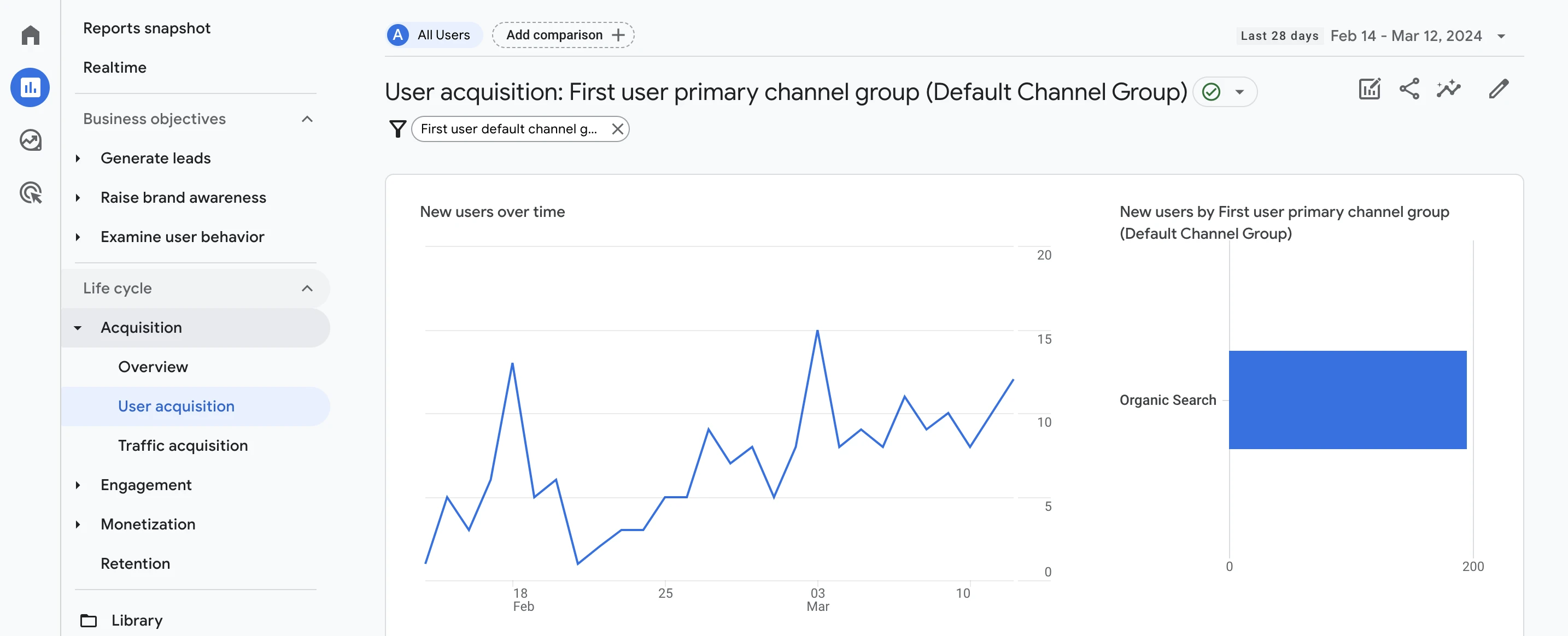 1. Navigate to Reports > Acquisition > User acquisition.