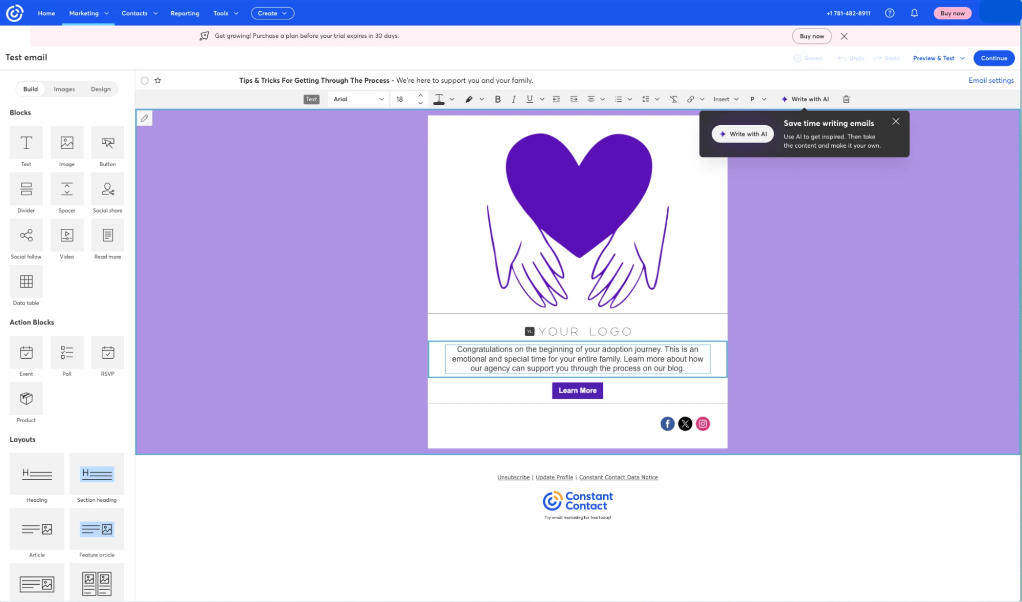 Constant Contact provides email marketing services along with features for SMS and social media communication. Its social media capabilities include ad design, post scheduling, and comment interactions, while the SMS functions allow for text messaging to contacts. However, accessing some valuable email features, like dynamic content, surveys, and advanced automation tools requires a pricier Plus plan.