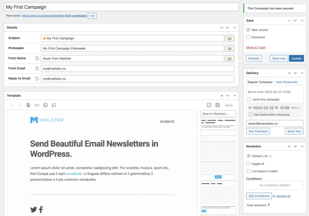 Integrated experience: Manage, create and analyze newsletters all within your WordPress website backend