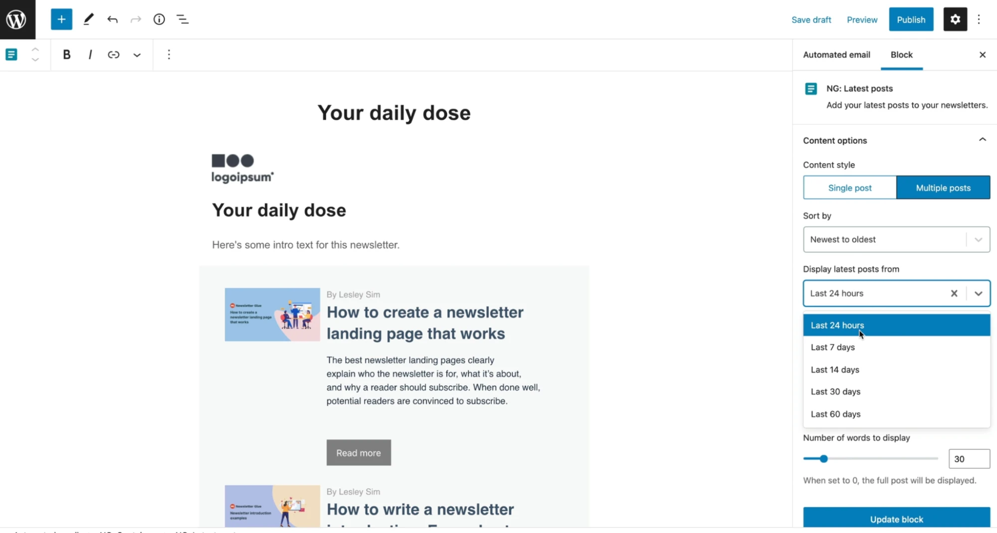 Time efficient: By sending your newsletter and publishing it as a blog post at the same time in a single click, you can cut your publishing time
