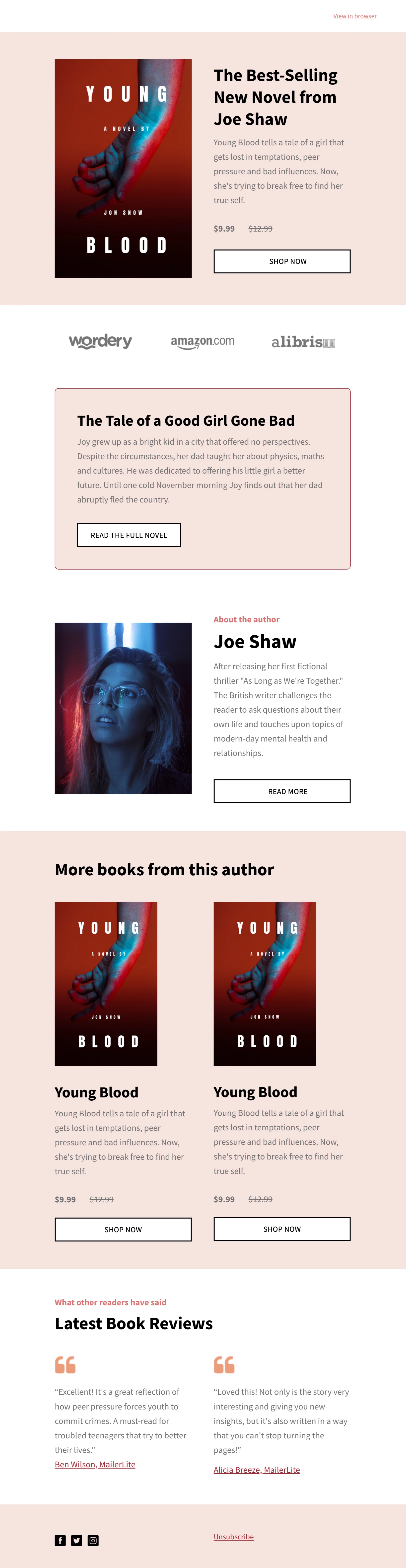 It’s easy to add your own content to this template. And if you like the email design but don’t sell books, you could easily use the template and email structure for any product.