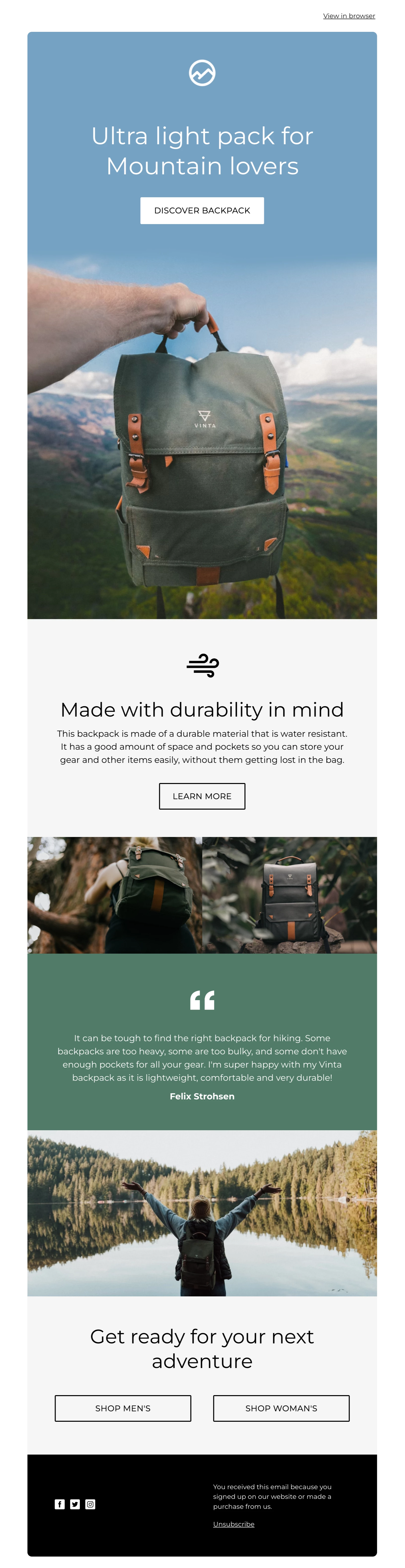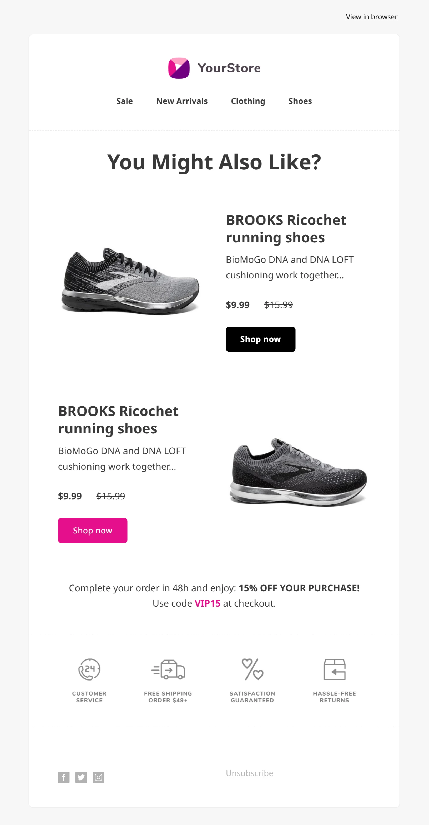 This product recommendation email template lets you sell to existing customers by recommending products they might be interested in.