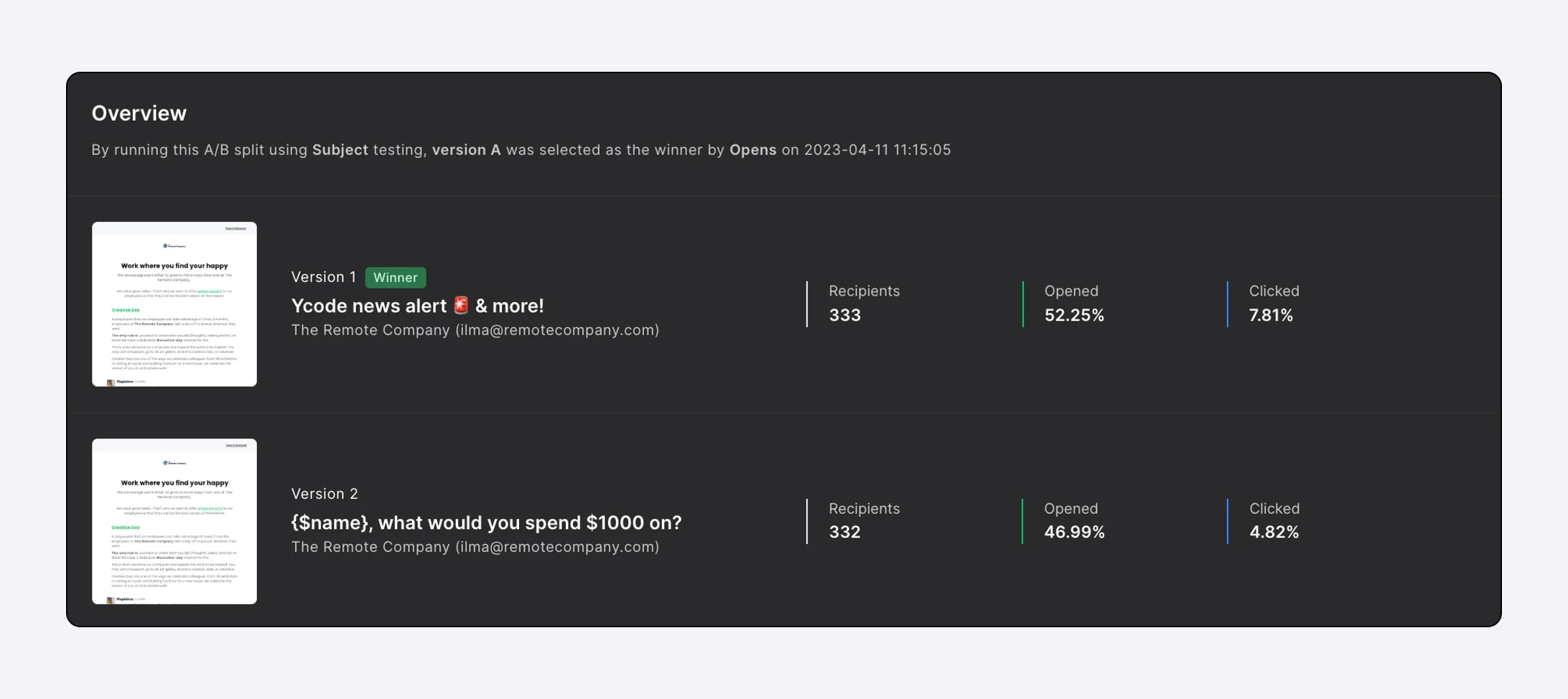 MailerLite will then send out the original campaign, track who doesn’t open it, and send the second version to this group of subscribers. All without Eric having to do a thing!