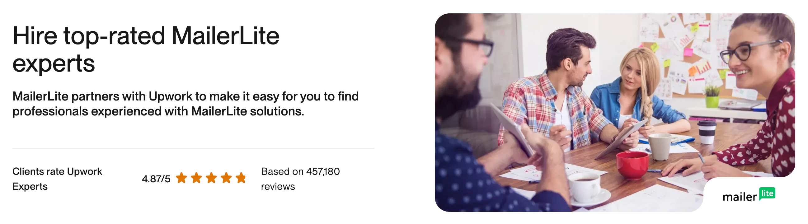 And if you're using MailerLite, don't forget: we've partnered with Upwork to help you skip the search and head straight to people who already know the ins and outs of MailerLite.