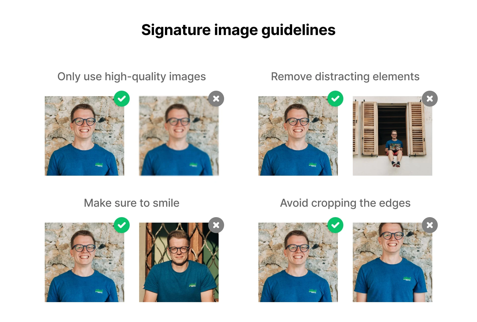 A headshot is a great compliment to your email signature, but not just any old photo will do! To build trust with subscribers and make your emails more personal, your photo should be: