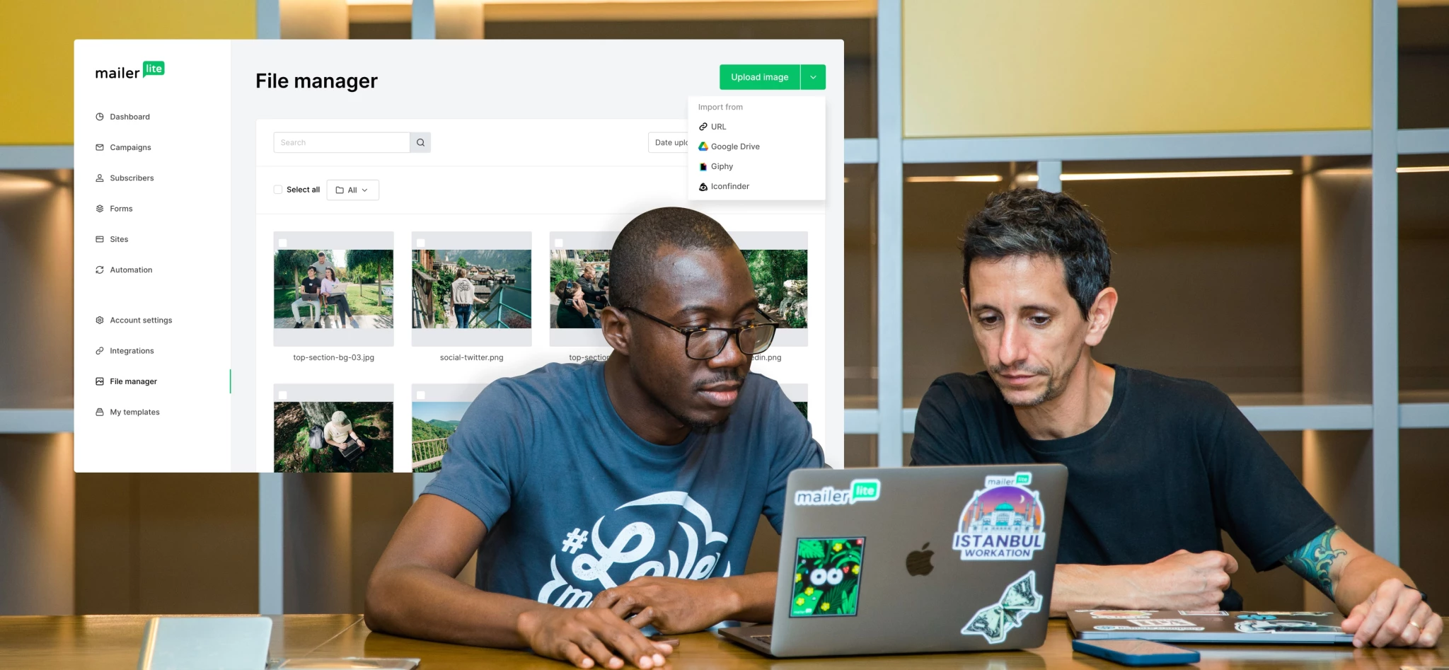 This is precisely why we added the new integration feature to our file manager. You can now access, search and upload files from Google Drive, Tenor and Iconfinder without ever leaving MailerLite.