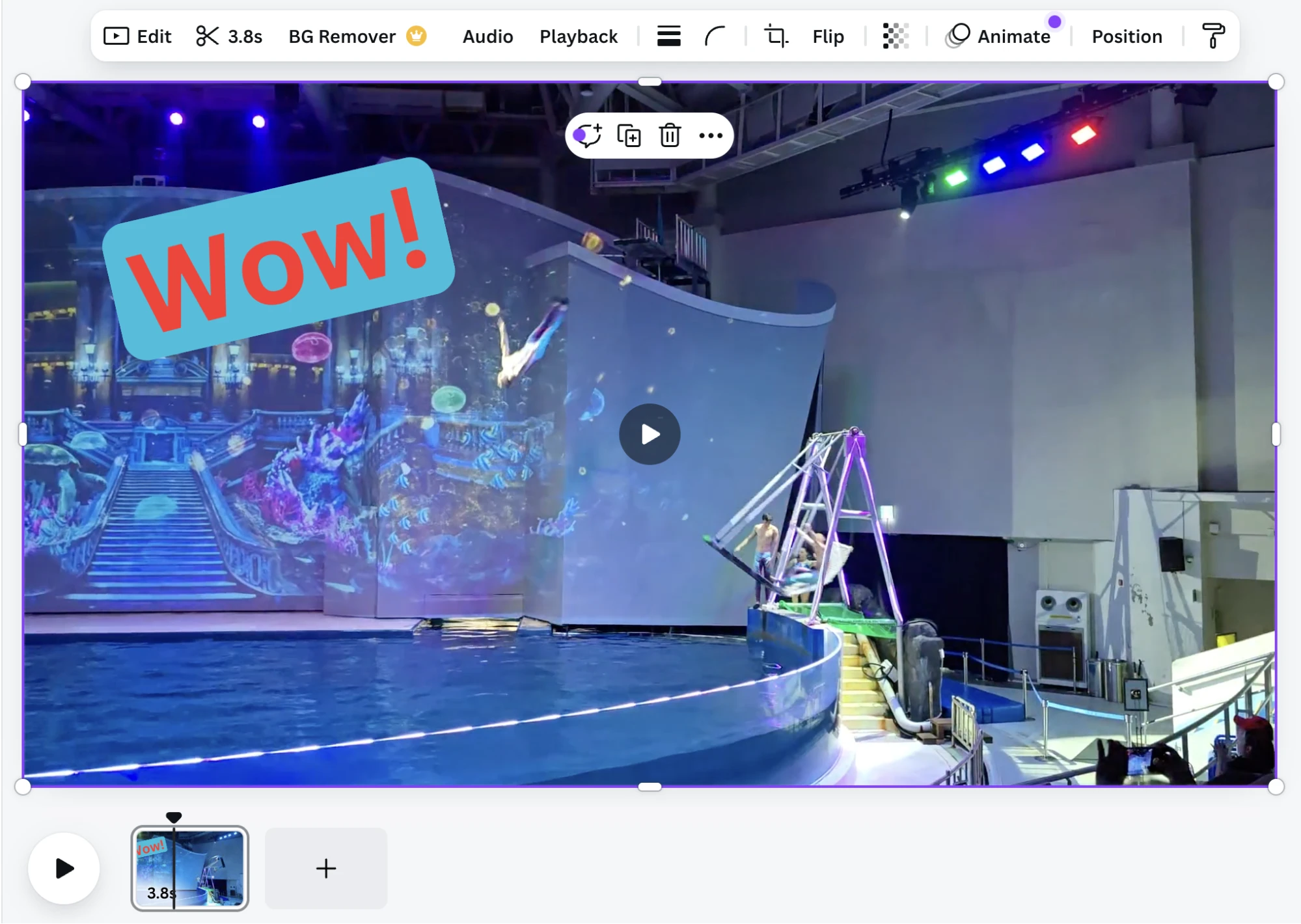 Or change the placement of an element so it appears to move. Move the element the same distance in each frame so the motion is smooth. Use your arrow keys in the Canva editor for precise movement.