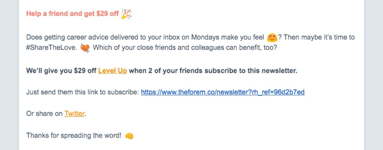 But, if you really want to harness word-of-mouth as a growth tactic, you’ll need to incentivize your subscribers to share more often.
