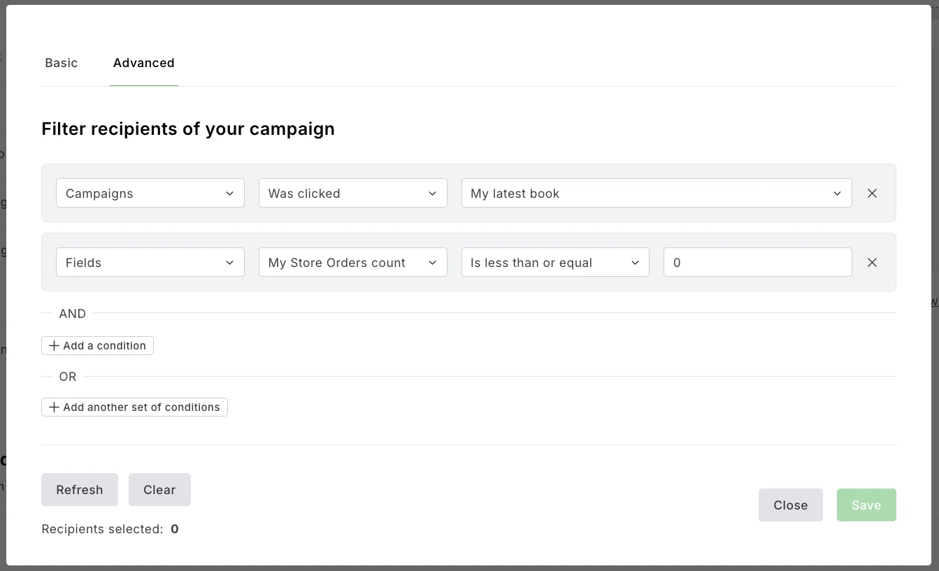 For example, the filtering options below would allow a business to send a promotion to anyone who clicked on a link to their latest product but didn’t actually buy it.