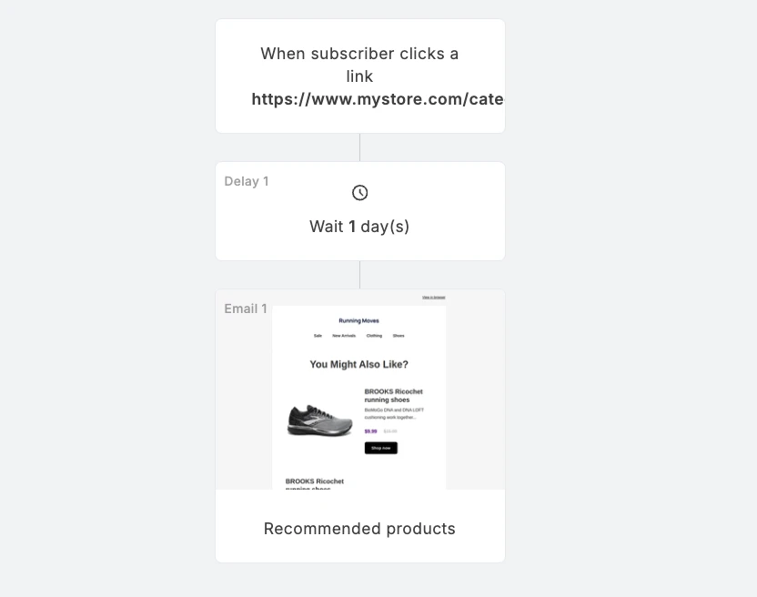 You can use this information to send relevant content to help generate a sale. For example, if a subscriber clicks on a: