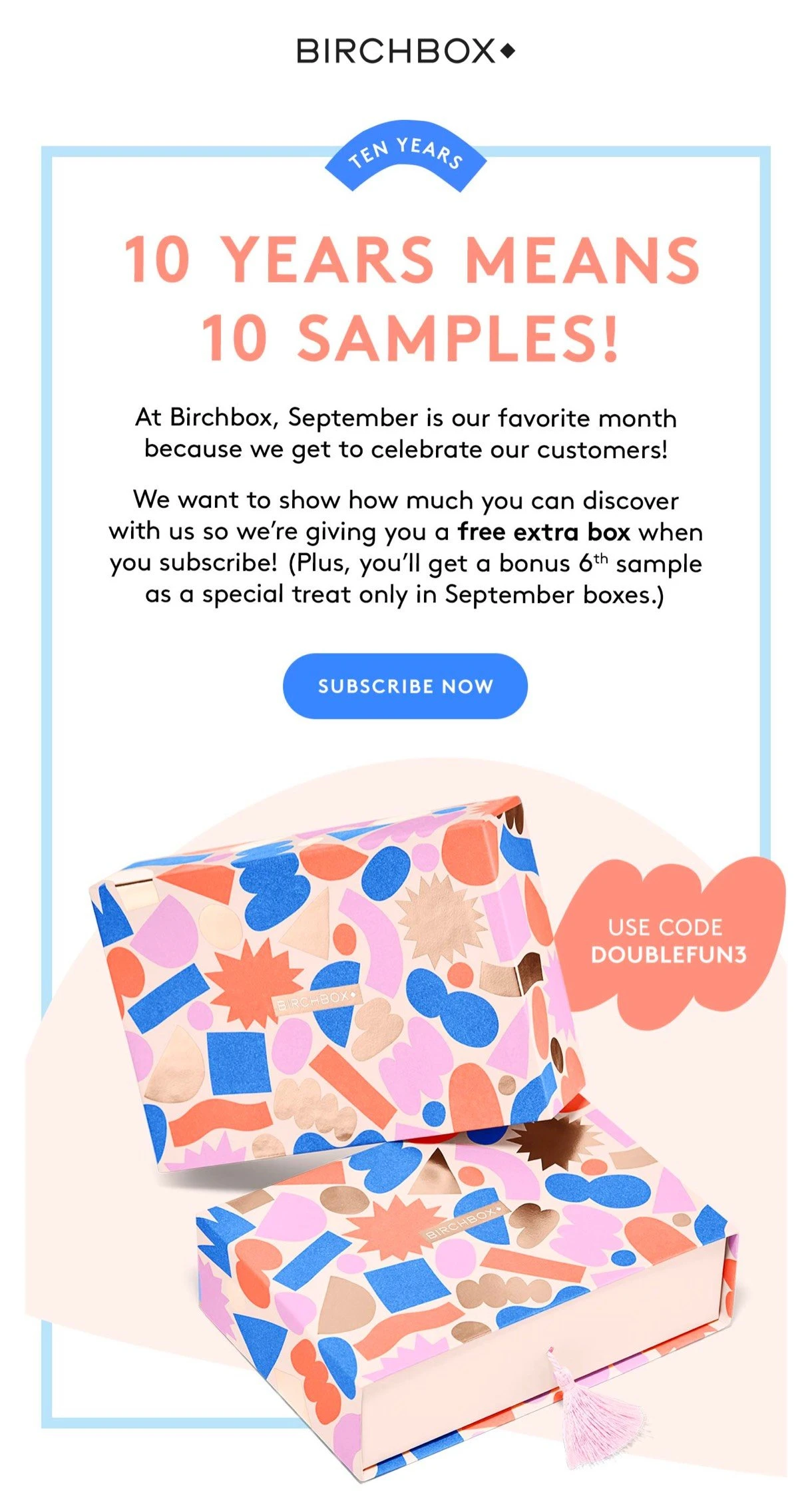 In the emails below, you see how Chipotle offers readers free guac and chips during their entire birthday month. Birchbox doesn’t celebrate someone’s birthday in particular but makes it a celebration for all their customers. Their promotion offers free boxes and additional samples.