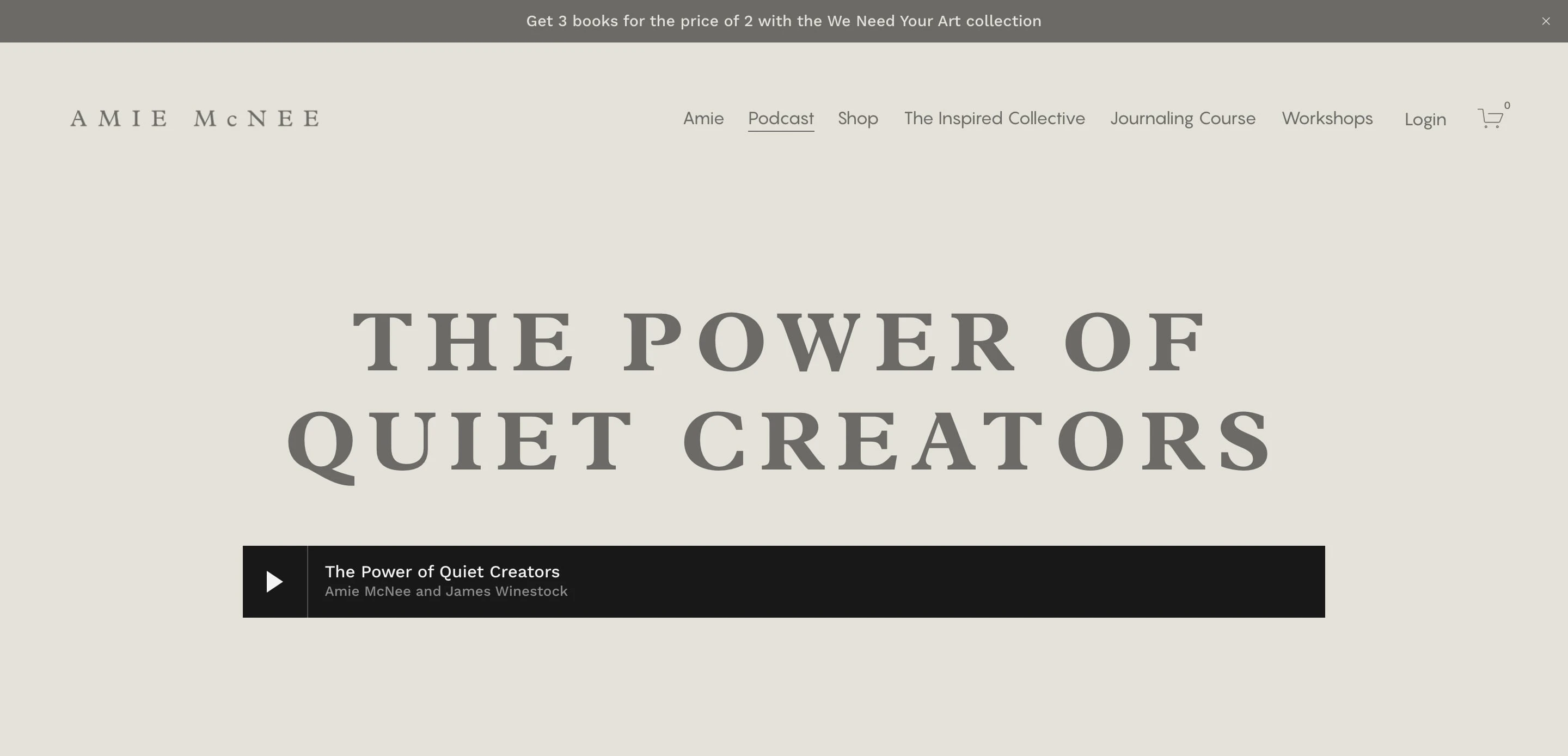 Amie McNee runs a journaling course for creatives. She also has a podcast called ‘Unpublished’, which encourages artists to embrace their creative process. By regularly sharing valuable content, she’s attracting a target audience that may later be interested in purchasing the course.