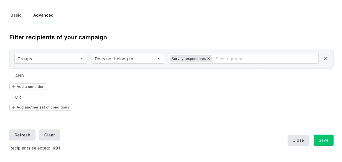 To boost your survey response rate with a follow-up campaign, create a new campaign as normal. Then follow these steps when choosing the recipients: