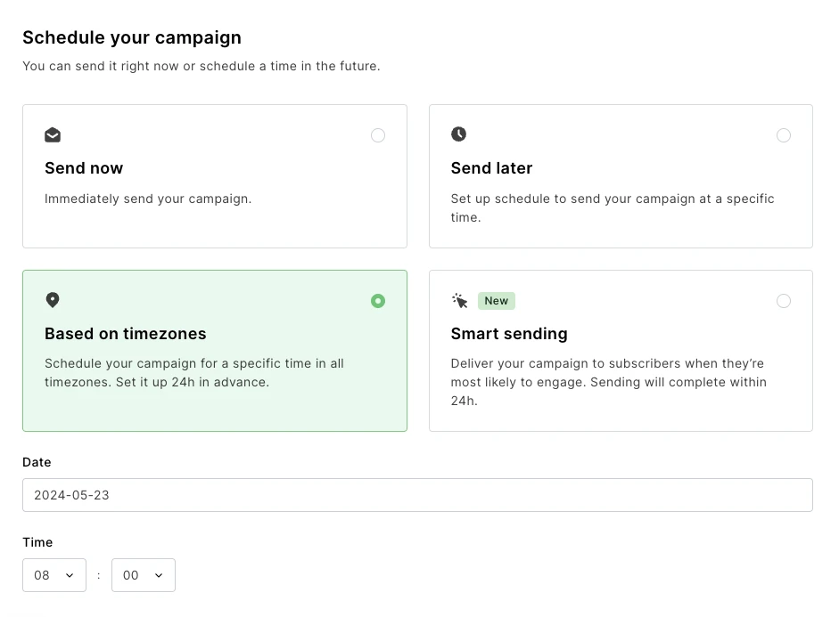 Another option is to use Send by timezone to schedule reminders at the same local time to each subscriber no matter where they are based. This is important as the perfect time for a subscriber in a particular time zone may be the middle of the night for another.