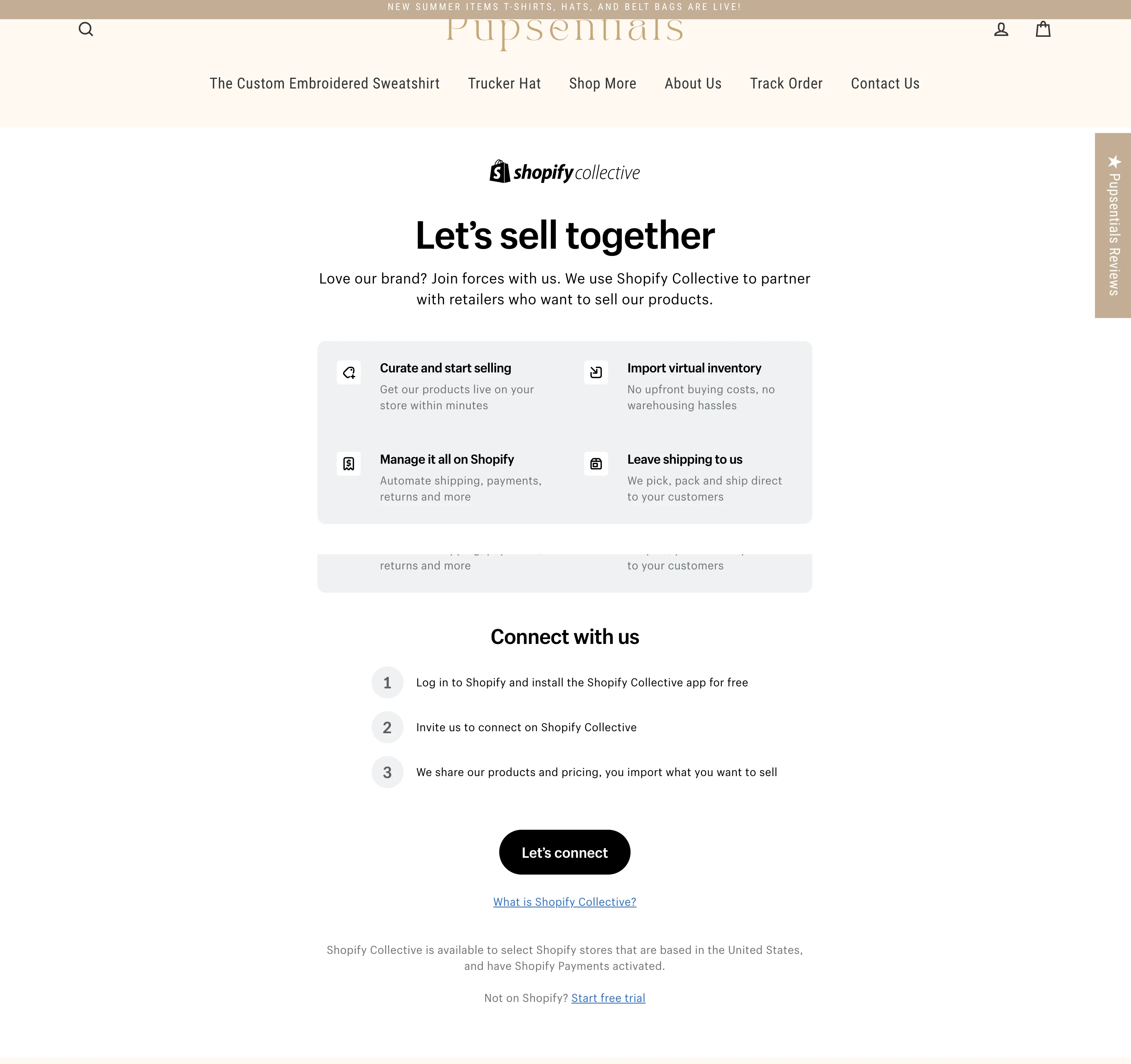 PUPSENTIALS opt for a retailer referral program and use Shopify Collective to team up with retailers who want to sell their products: