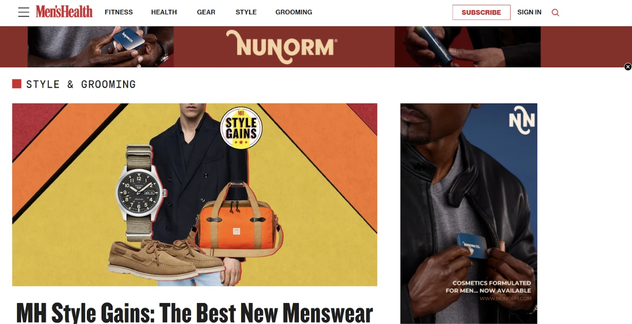 Here’s an example of NuNorm, a natural male makeup brand, using Google’s Display network to showcase its banner ads on the Men’s Health website.