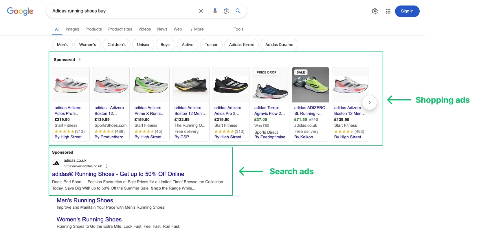 Google Search Ads primarily target users based on their search queries. They’re particularly effective when you need to target users with high intent who are actively searching for specific products, services, or information.