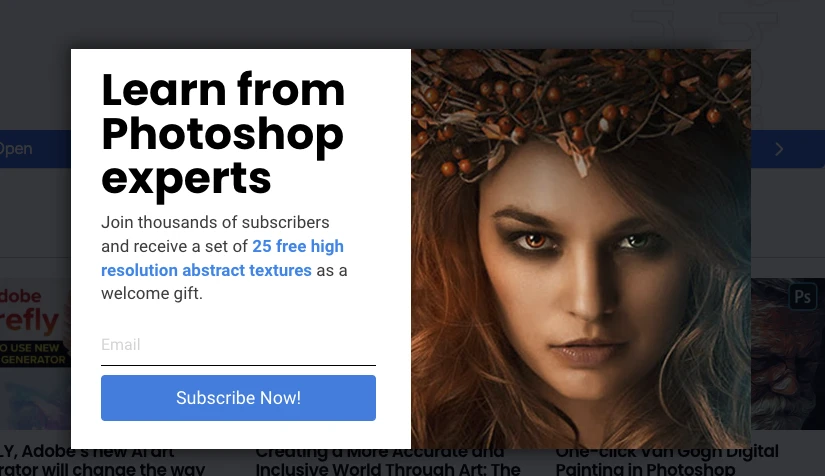 Photoshop Mosaic does this by promising to send anyone who subscribes a set of free high-resolution abstract textures for Photoshop.