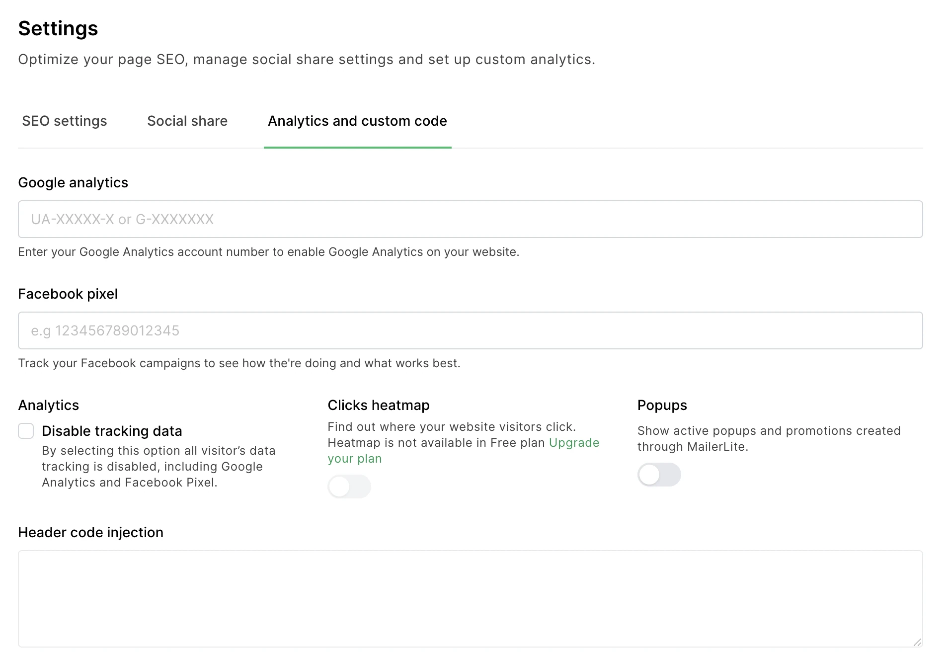 Anyone with a paid MailerLite account can add custom code to their websites today. Just head to the Sites page in your app and follow the instructions above. Here are direct links for MailerLite Classic and new MailerLite users.