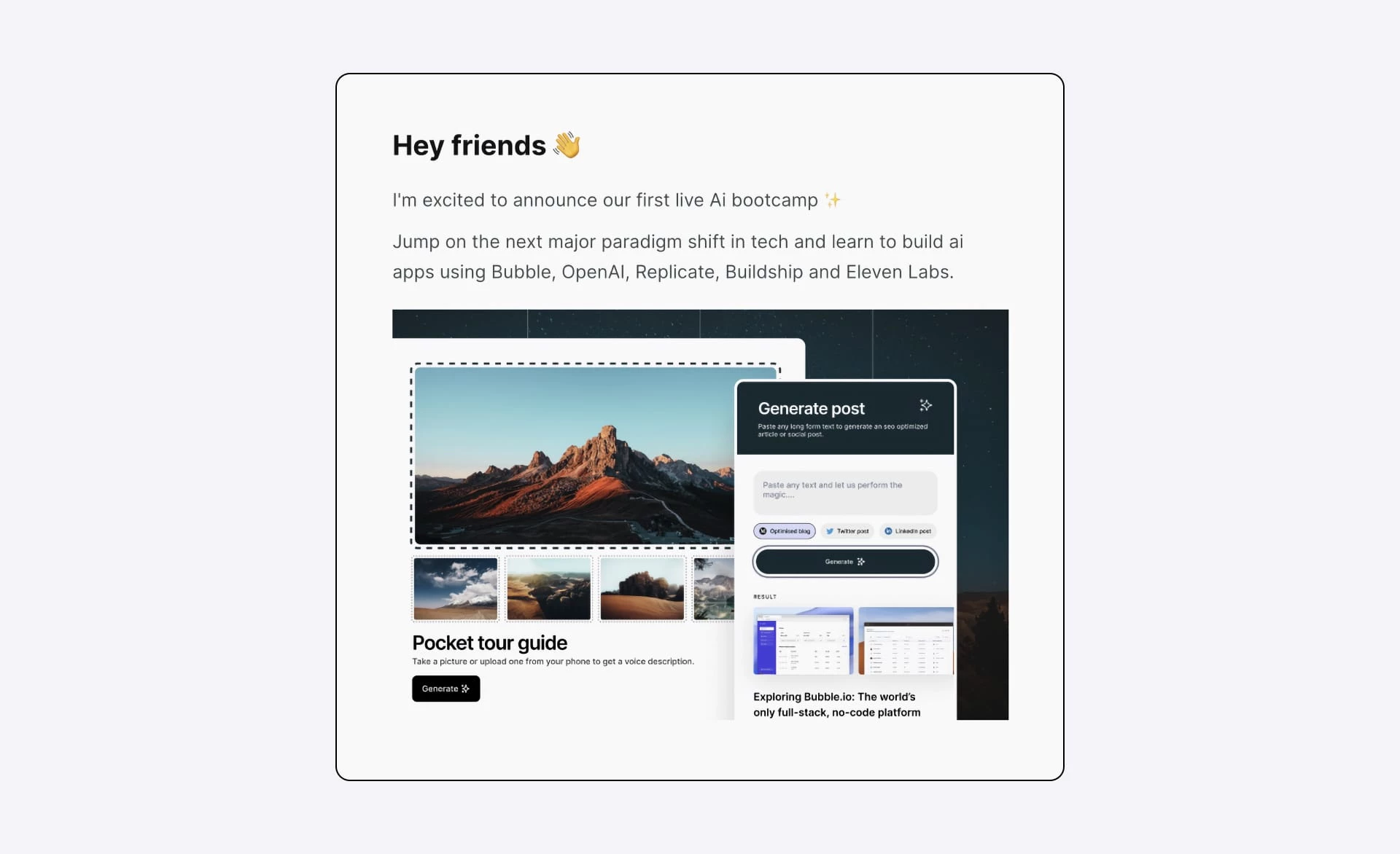 Buildcamp’s Gregory John used the above strategy to presell his course that taught students how to build no-code apps with AI.
