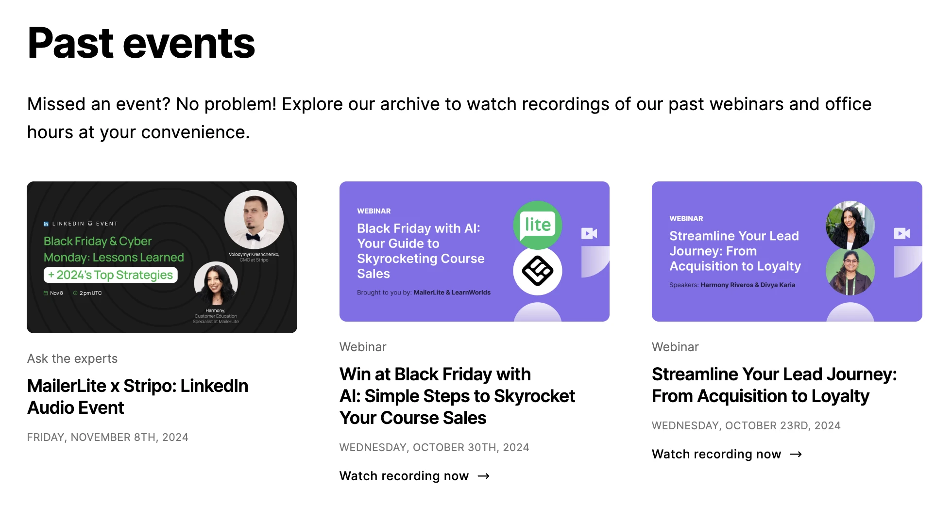 At MailerLite we run webinars on various topics related to email marketing. We know that anyone joining these sessions is interested in learning more about email marketing, so they’re also a great opportunity to promote our courses.
