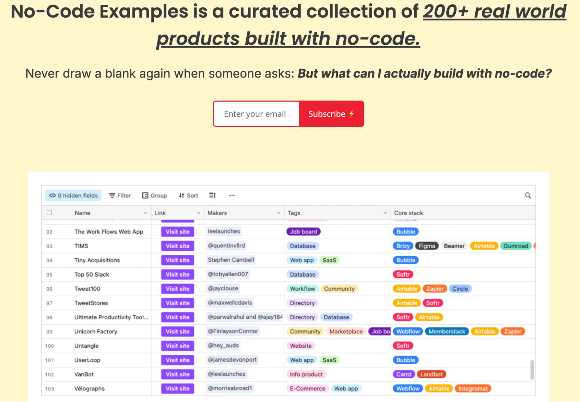 100 Days of No Code built a directory of no-code tools that people can access by providing their email addresses.