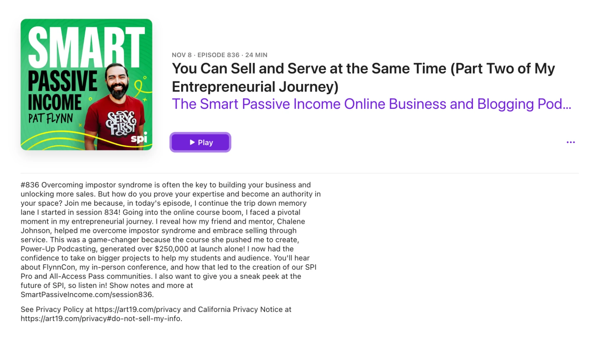 He provides tons of value in every episode while regularly mentioning the course in both the podcast content and the description.