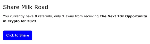 Cryptocurrency newsletter Milk Road has a referral program that stands out as the reward is a simple digital download.