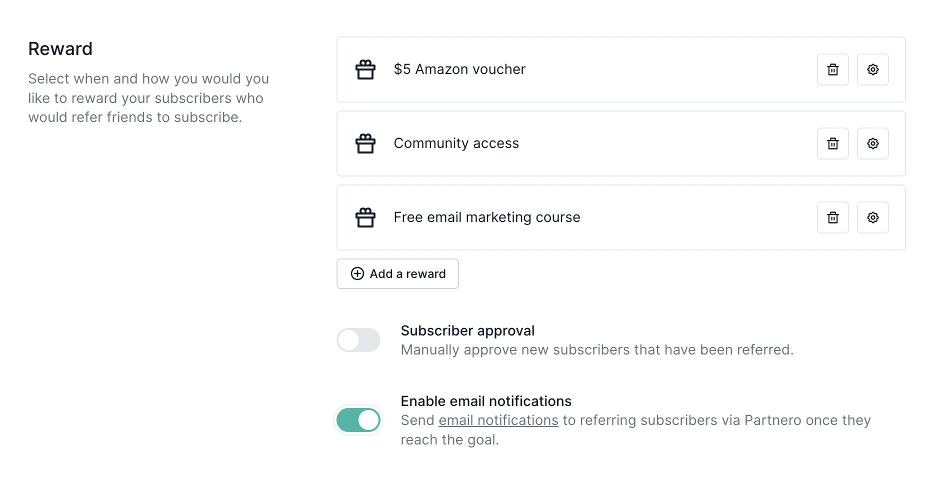 Setting up several reward tiers for different levels of referrals can encourage subscribers to share your newsletter with multiple people.