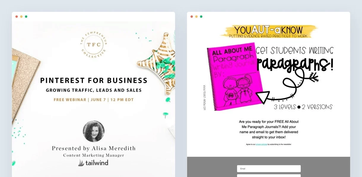 For example, the landing pages below let you know right away that you’ll get something in exchange for your email.