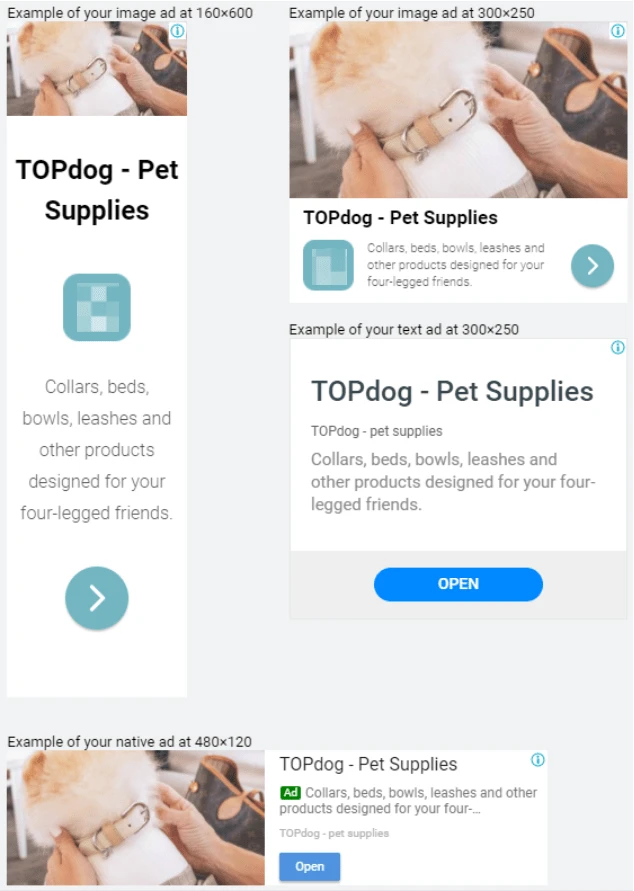 Display ads are highly visual—you can use images of various sizes and even animate them.