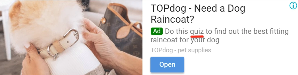 Let’s go back to your imaginary dog product store. You could create a landing page dedicated to the best raincoats for dogs in 2021. Include a quiz on choosing the best raincoat for puppies of different sizes and breeds, and have the results sent to your visitor’s emails.