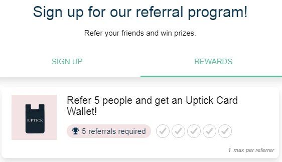 Their referral system rewards users with brand swag for every 5 referrals. While this can seem like a risky strategy, milestone and leaderboard systems are actually quite successful in attracting new customers and referrals.